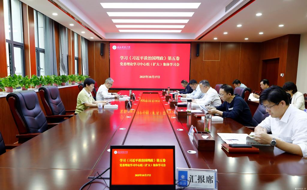 闫英姿强调,要深刻领会《习近平谈治国理政》第五卷中蕴含的实践要求和使命担当,特别是“十个明确”“十四个坚持”“十三个方面成就”“两个结合”“六个必须坚持”等重要思想和科学方法,把学习成果转化为服务中国式现代化、防范化解重大风险、推动学校高质量发展的政策举措和实际成效。要坚持“学思用贯通、知信行统一”,深刻理解推进中国式现代化要处理的六对重大关系、建成教育强国应把握的五大关系、新时代推进科技事业发展的“八个坚持”等,将理论学习与学校“十四五”收官、“十五五”规划实施、学校“升大申博”等中心工作紧密结合,破解发展难题,激发办学活力,展现能力担当。