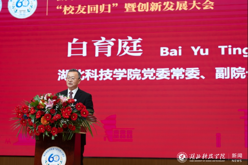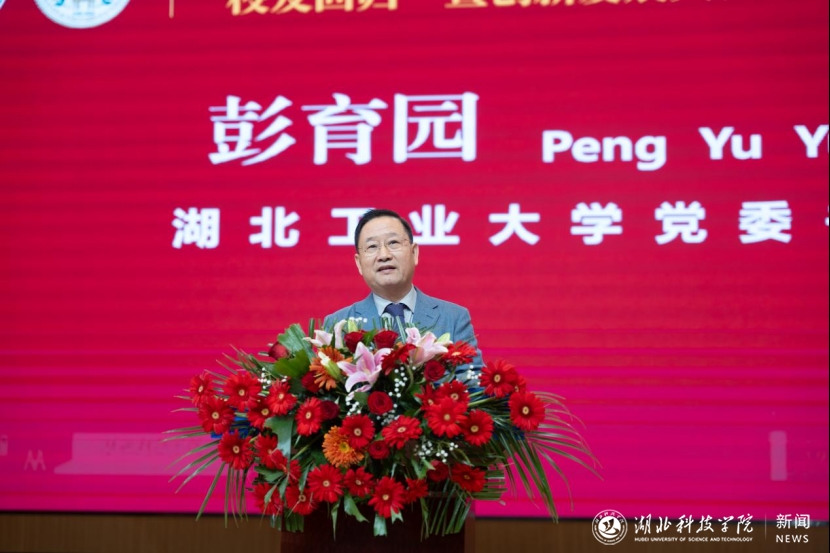 湖北工业大学党委书记彭育园、武汉大学党委常委、副校长袁玉峰作为兄弟高校代表致辞,表达对湖科医学院甲子华诞的祝贺与未来合作的期待。