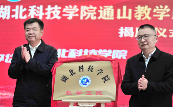 校党委副书记、校长李岱与通山县委书记吴涛共同为“湖北科技学院通山教学医院”揭牌。