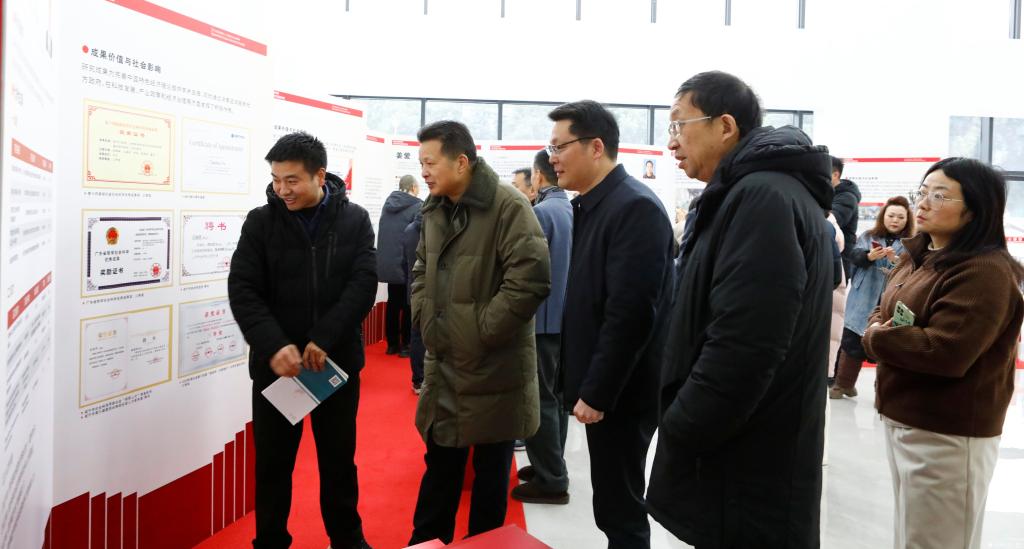在揽月楼大厅展区内,一块块图文并茂的展板、一本本厚重详实的学术著作、一幕幕生动鲜活的多媒体演示,全方位、多角度呈现了学校社科研究的硬实力与创新活力。展品涵盖崇阳方言研究、传统教育学、区域经济学、马克思主义理论阐释、特色艺术设计、村落振兴实践、革命历史研究等多个优势学科方向,既有国家级、省部级科研项目的阶段性成果,也有服务地方发展的应用型成果,吸引了与会人员驻足观看、深入交流,不时发出阵阵赞许。