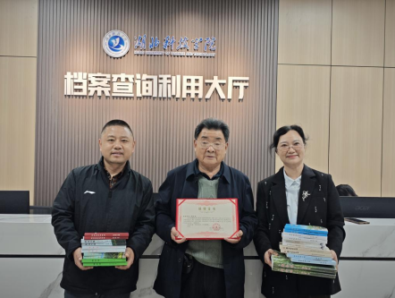 “感谢您捐赠《咸宁话》《咸安区红色地名》《咸安机智人物》《向阳情》《鄂南桂花民俗》等11本书籍(各2册),本馆已作珍藏。特发此收藏证书,以资纪念。”11月3日,咸安区政协退休干部、市方言建档专家、市乡土人才、南鄂楷模、省十佳阅读推广人陈大银,前往我校档案馆捐赠他潜心多年收集整理创作及主编的多部地方文献图书。