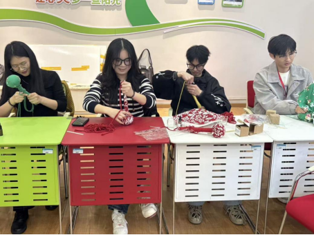 在艾草锤制作环节,师生围坐一堂,细心编织彩绳、整理布料,交流制作心得。团委书记周其其积极参与,与同学们共同完成每一个步骤。心理部成员现场巡回指导,及时答疑,现场气氛温馨有序。