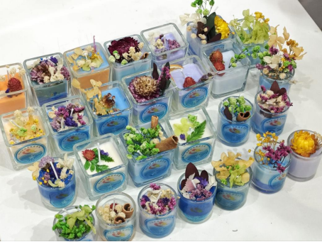 香薰杯蜡的制作同样吸引师生投入其中。大家分工协作,有序完成熔蜡、调香、注模等环节。参与者根据个人喜好挑选干花,精心点缀于半凝固的蜡面,静待其成型。不一会儿,淡蓝、乳白的蜡体逐渐凝固,艾草精油的清新与干花的淡雅交织,营造出安宁温暖的氛围。