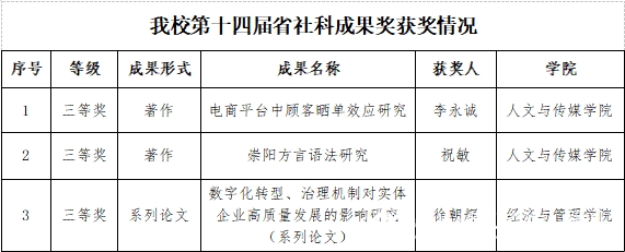 我校三项成果能够获得表彰,既是对成果本身学术价值与实践意义的充分肯定,也反映了我校在服务地方发展、推动理论创新方面的积极作为。