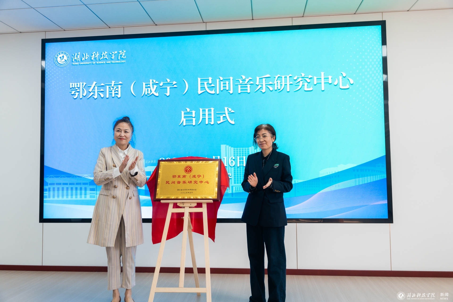 启用仪式上,省音乐家协会驻会副主席刘翔宣读了《关于同意成立鄂东南(咸宁)民间音乐研究中心的批复》,李悦与我校音乐学院院长王保华共同为研究中心启用揭牌,音乐学院学生带来了非遗传承节目汇报演出。