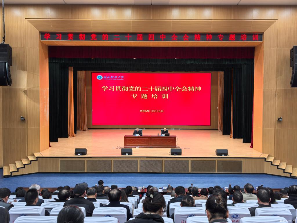 12月15日,学校在揽胜楼学术报告厅举行学习贯彻党的二十届四中全会精神专题培训,引导全校党员干部和教职员工深刻领会、准确把握全会精神实质,切实把思想和行动统一到党中央决策部署上来。全体在校校领导、中层正副职、基层正副职、党支部书记及马克思主义学院教师参加培训。培训会由党委副书记、校长李岱主持。