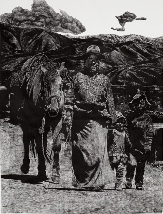 汉江师范学院 黄新霞版画《我们走在大路上》 160×120cm