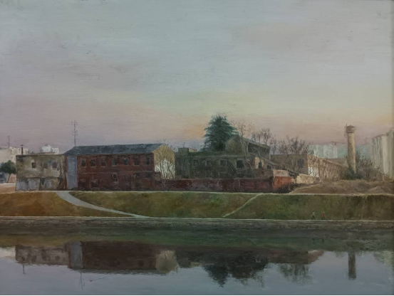 湖北工程学院李顺燕 油画《澴河的黄昏》100×120cm
