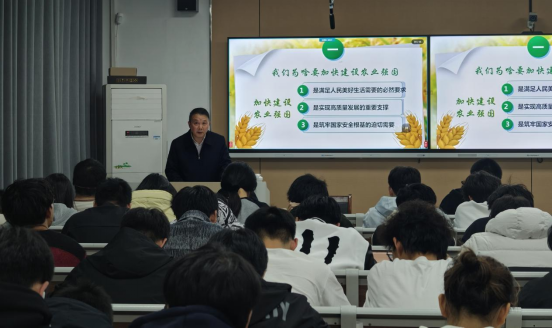 12月11日晚,学校党委常委、组织人事部部长黎鸿翔以“新时代青年在农业强国建设中的使命担当”为题,在25级大数据中外合作班讲授“加快建设农业强国”专题思政课。