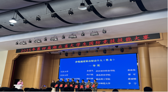 近日,第四届湖北省大学生国防竞技技能大赛圆满落幕。我校学子在大赛中奋勇拼搏、表现亮眼,凭借扎实的国防技能和良好的团队协作精神,斩获多项个人与团体荣誉,充分展现了学校国防教育的丰硕成果与学子们昂扬向上的精神风貌。