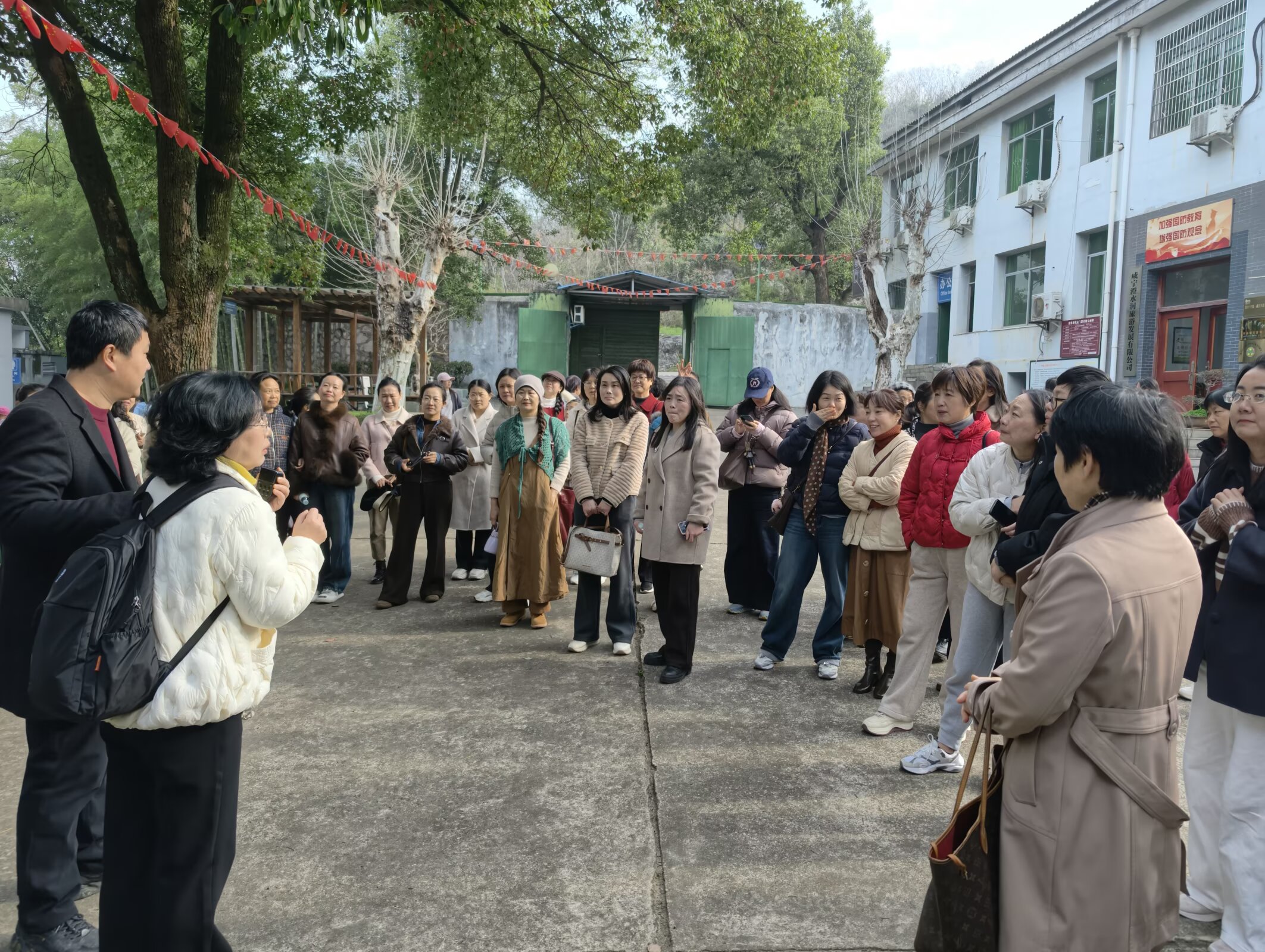 女教职工们精神焕发、兴致勃勃,先后前往131军旅小镇与乡村客厅油菜花景点参观游览。在131军旅小镇,大家驻足参观、静心聆听,在厚重的历史底蕴与蓬勃的时代发展中感悟初心使命;漫步于清幽的林间步道,大家呼吸清新空气,畅享自然生态之美,身心得到充分放松。在乡村客厅的油菜花海中,满目金黄与春日暖阳相映生辉,大家驻足拍照、笑语盈盈,用镜头定格下春日里的美好。
