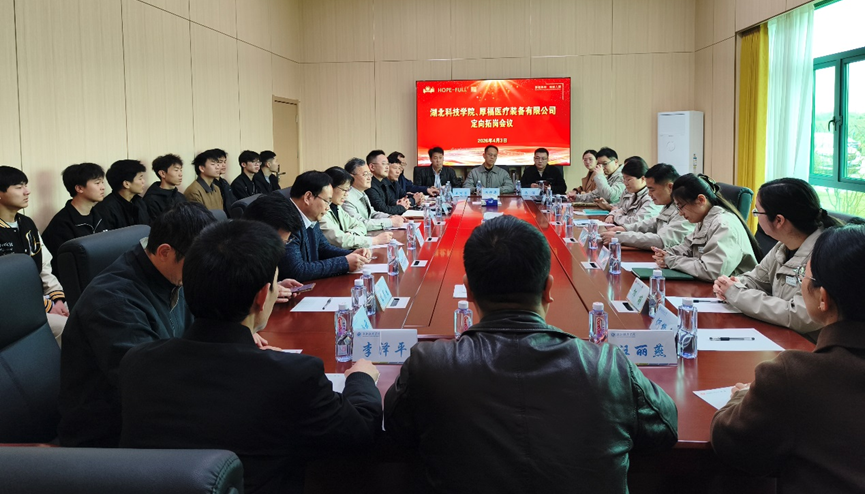 座谈会上,厚福医疗装备有限公司常务副总经理杨浩、湖北三六重工有限公司总经理周冬青分别介绍了企业发展历程、主营业务、技术优势及人才需求情况。招生就业处、自动化学院相关负责人就校企合作和教学科研情况进行了交流。