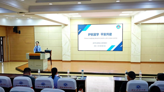 9月25日,咸宁市公安局出入境管理支队走进我校,在教3-401教室为留学生举办了一场以“护航留学 平安共建”为主题的安全知识讲座。本次活动由国际教育学院副院长刘世雄主持,国际教育学院院长王森林、保卫处副处长冯国良出席活动。