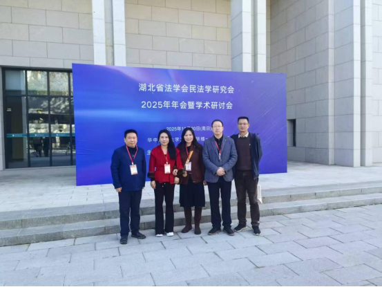 11月30日,在华中师范大学文科科研楼一楼报告厅,召开了湖北省法学会民法学研究会2025年年会暨学术研讨会。本次会议由湖北省法学会民法学研究会主办,华中师范大学法学院承办,湖北中和信律师事务所、武汉中南瑞达教育协办,会议主题为“民法典实施中的疑难问题研究:争鸣与共识”为主题的学术研讨盛会。研讨会汇聚了省内外二百余名高校专家学者、法律实务界精英及青年学子,我院由湖北省法学会民法学研究会常务理事张建军教授,理事刘波副教授、郑敏副教授,团队教师何于华副教授、林淑飘老师一行5人参与本次年会交流学习。
