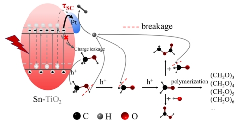 随着全球碳中和目标的推进,氢能作为清洁能源载体备受关注。传统甲醛工业生产依赖高温高压工艺(200-300℃),能耗高且无法联产氢气。光催化甲醇脱氢(CH3OH → HCHO + H2)可在温和条件下同步生产高值醛类化学品和氢气,但SC界面电子转移效率低一直是技术瓶颈。研究以常见的TiO2为模型,首次揭示了光、热协同作用对SC界面电子转移动力学的影响机制。