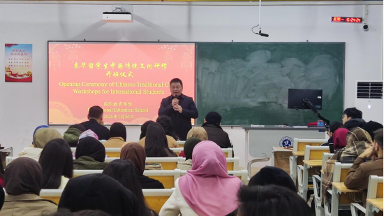 王森林强调,本次研修班特邀在传统文化领域造诣深厚的专家担任授课教师,课程内容涵盖太极拳、咸宁地方音乐《江南桂花香》及瑶族长鼓舞等,旨在全面展现中华优秀传统文化与咸宁地方特色的丰富内涵。他寄语全体学员珍惜此次学习机会,在实践体验中感悟文化精髓,努力搭建中外友谊的桥梁。