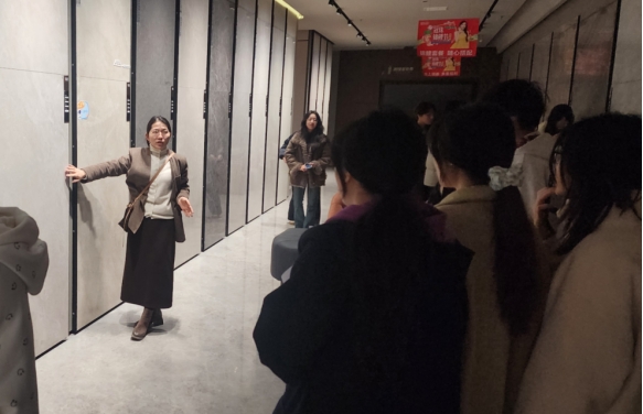3月19日,教学团队进一步组织学生前往居然之家装饰材料市场开展调研学习,将教学延伸至产业与市场一线。在材料与工艺考察环节中,学生系统了解地面材料、墙面饰材、家具系统及配套产品的性能特征与应用方式,并通过与商家交流,深化对材料选择、施工工艺与成本控制之间关系的认知。