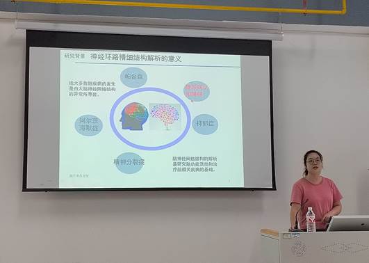生物医学工程与医学影像学院刘钰蓉老师围绕《糖尿病认知障碍小鼠相关神经环路研究》,分享了团队在糖尿病并发症领域的突破性发现。研究以小鼠前额叶皮层为模型,通过双色荧光蛋白病毒工具与高精度成像技术,首次揭示了糖尿病模型小鼠在神经环路和血管网络层面的异常特征。这一成果为理解糖尿病认知功能障碍的发病机制提供了神经生物学证据,为临床干预提供了潜在靶点。