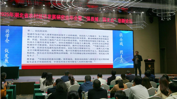 11月8日,2025年湖北省农村经济发展研究会年会暨“强县域、固支点”创新论坛在咸宁召开。中国人民大学经济学院刘守英教授应邀出席,以“城乡中国格局下的乡村系统重构”为题作主旨报告。报告立足中国城乡转型全局,结合湖北县域发展实际,深度剖析城乡中国的转型逻辑与乡村系统重构的关键路径,为参会者带来深刻启发。