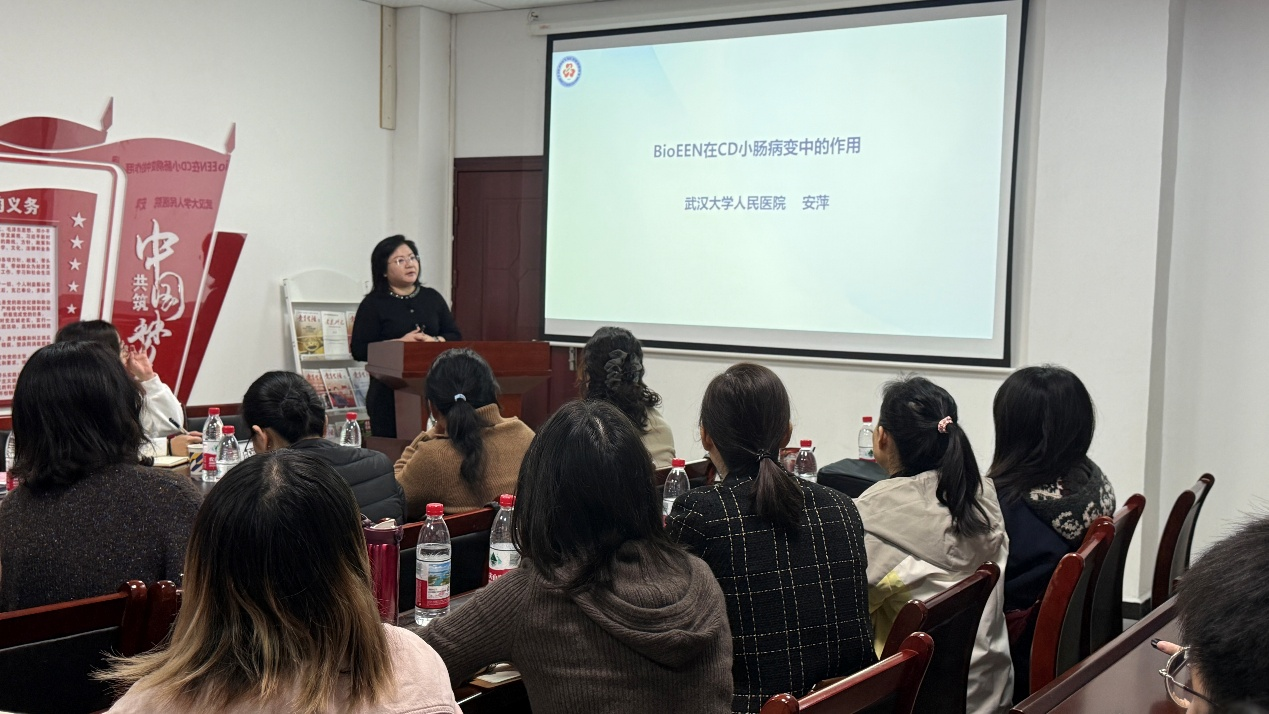 为促进跨学科学术交流,2025年11月6日上午,口腔与眼视光医学院特邀武汉大学人民医院(湖北省人民医院)消化内科知名专家安萍教授莅临访问,并于学院学术报告厅成功举办了题为“BioEEN在CD小肠病变中的作用”的专题学术讲座。本次讲座由学院院长周燕红教授主持,全院师生踊跃参与,现场学术氛围热烈。