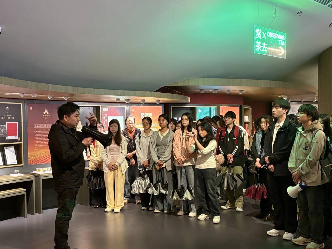 清晨,师生们从学校南门启程前往赤壁。途中,带队老师细致讲解青砖茶基础理论,为实地考察搭建知识框架。此行第一站是羊楼洞茶文化生态产业园,师生们在此参观了产业园规划展区、茶文化展示区与产业孵化区,深入了解“茶+文旅+产业”融合发展模式,直观感受传统青砖茶产业的现代化转型路径。