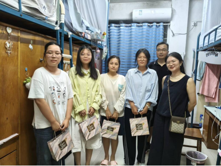 慰问小组先后走访女生宿舍和男生宿舍,走访期间,老师们与同学们围坐一起,细致询问大家的家乡、住宿适应情况以及饮食起居是否习惯,并针对部分同学提出的课程压力与学习困惑,给予耐心地解答和建议。老师们结合自身经历,鼓励大家合理安排时间,循序渐进,逐步适应大学学习节奏。